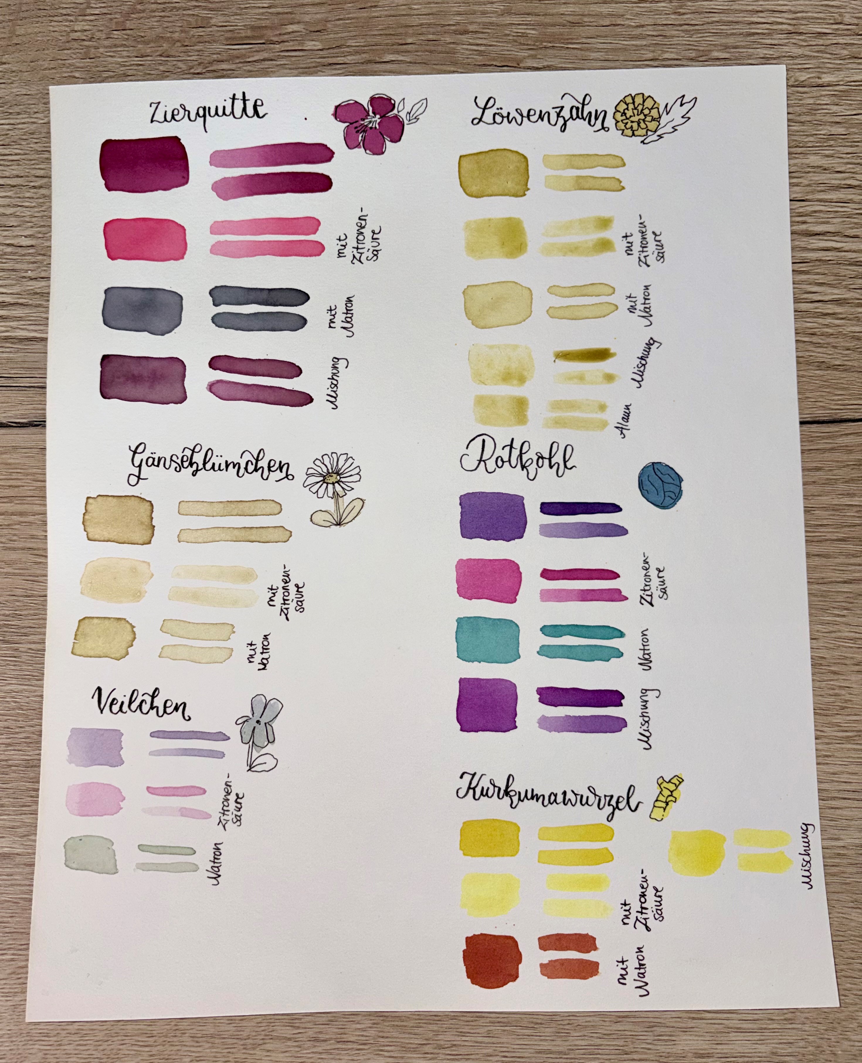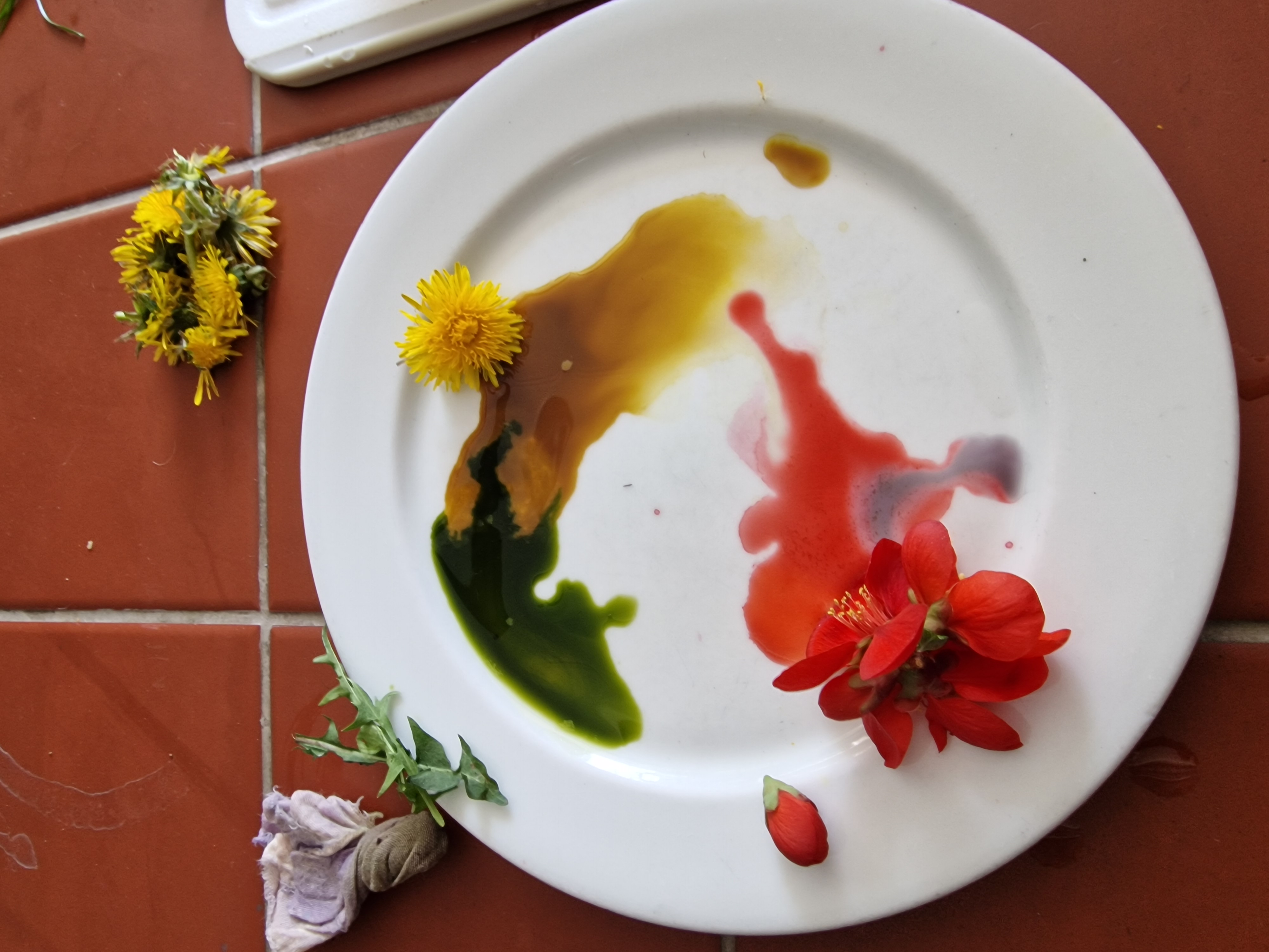 Farben aus der Natur sind derzeit sehr beliebt. Aus Wurzeln, Blättern, Blüten oder Früchten direkt aus der Natur oder aus Abfällen der Küche können die Schülerinnen und Schüler mit wenigen Handgriffen verschiedene Pflanzenfarben (Tinten) gewinnen. Das Planzenmaterial wird zerkleinert und der Farbsaft mit Hilfe von Presstüchern ausgepresst. Dieser kann sofort künstlerisch eingesetzt werden. Dazu benötigt die Gruppe Aquarellpapier, das mitgebracht werden muss.